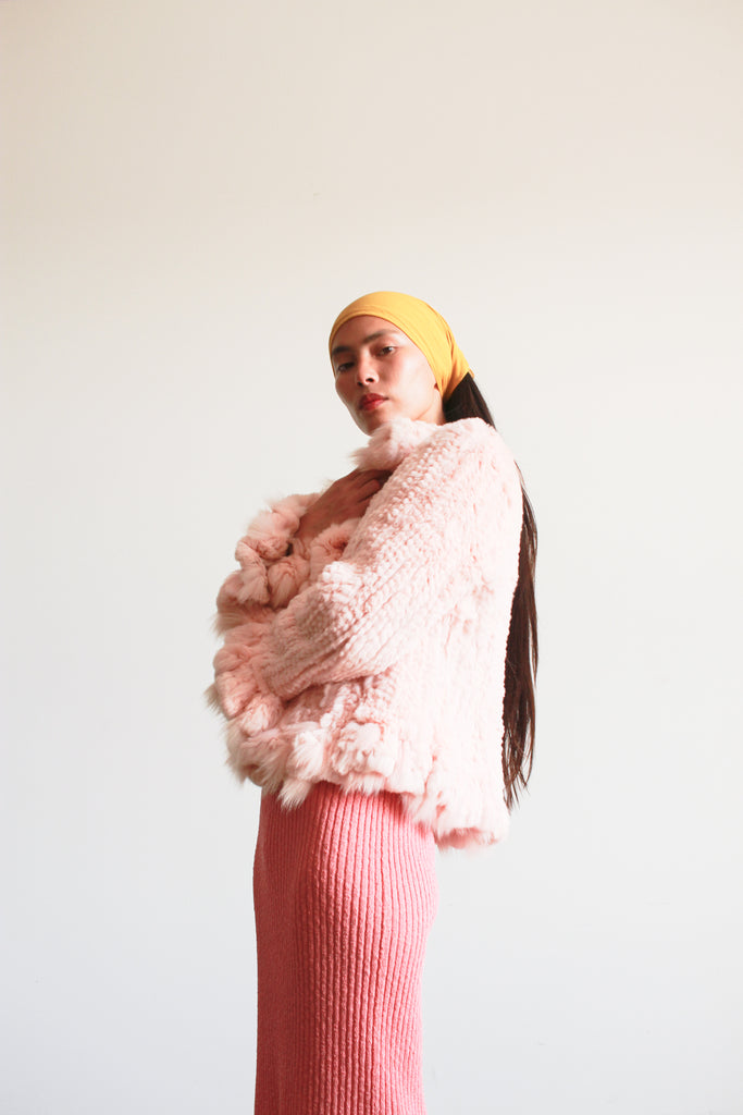 Circa 1950s. Rabbit fur fabric. Open front. Fits up to modern L. Excellent condition.