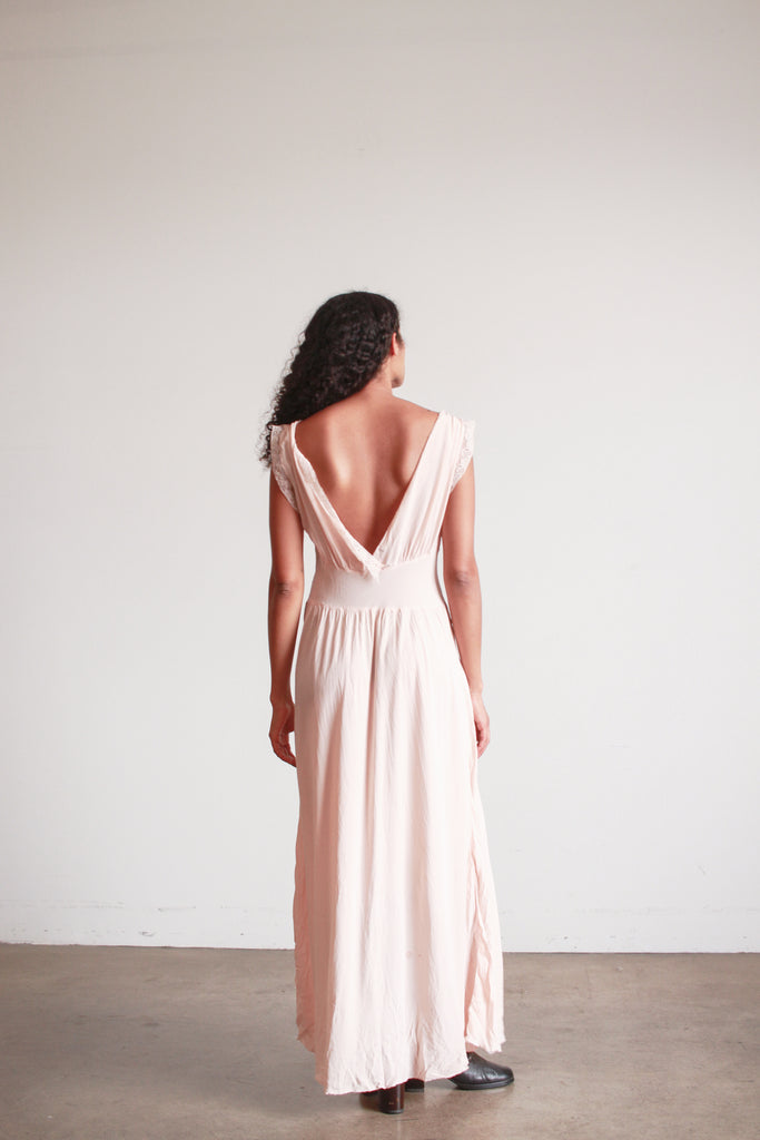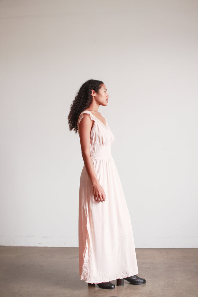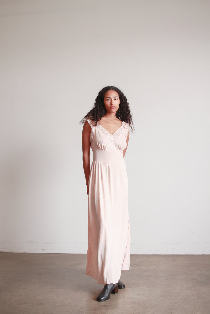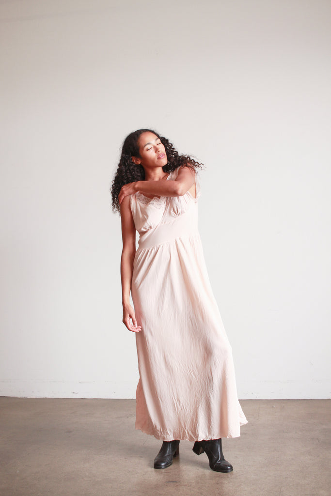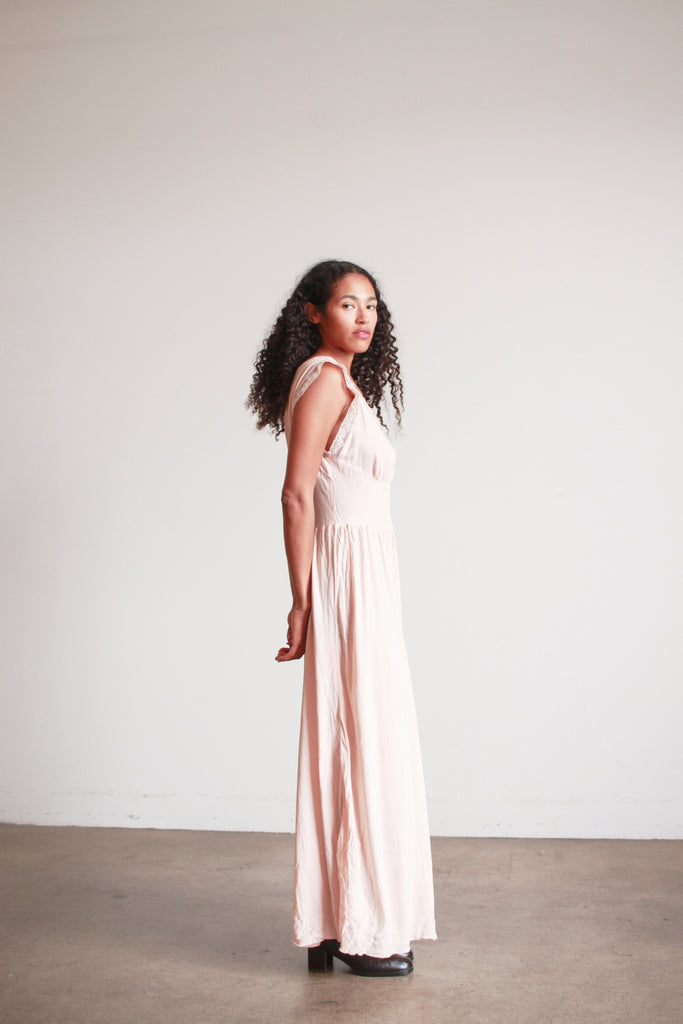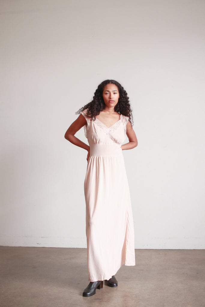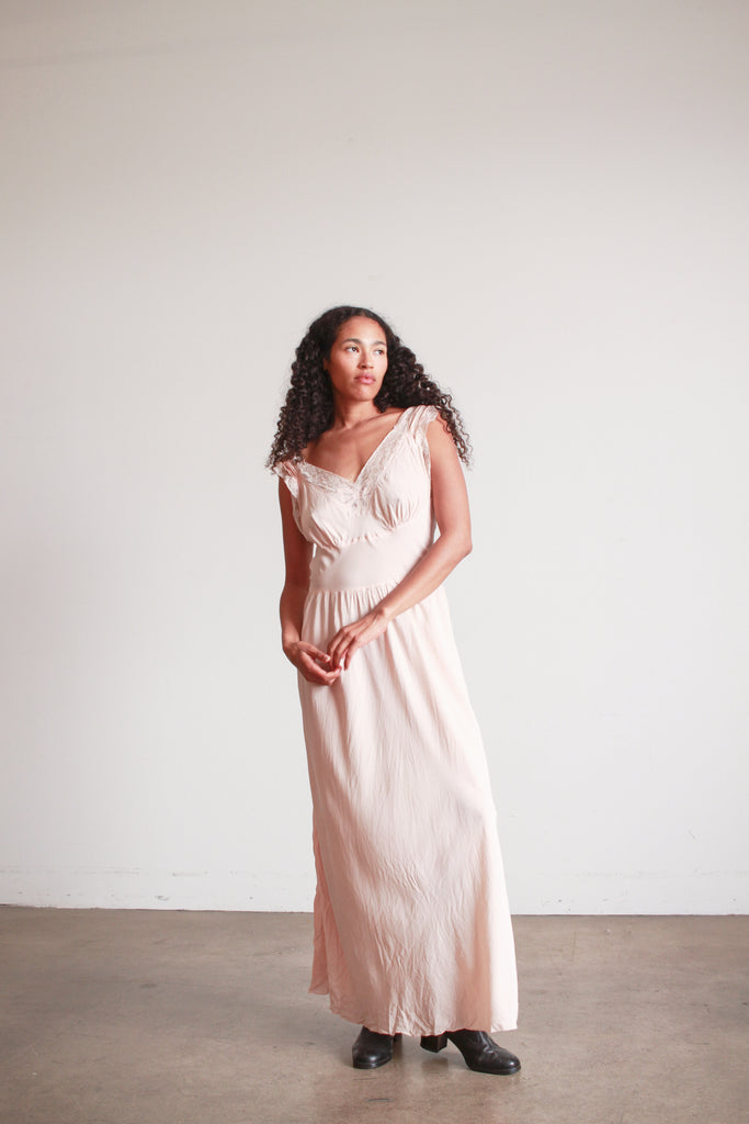 1940s Barbizon Baby Pink Silk Bow Trim Nightgown