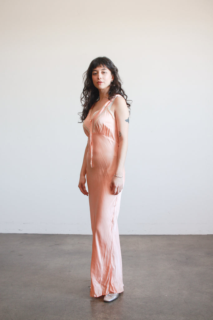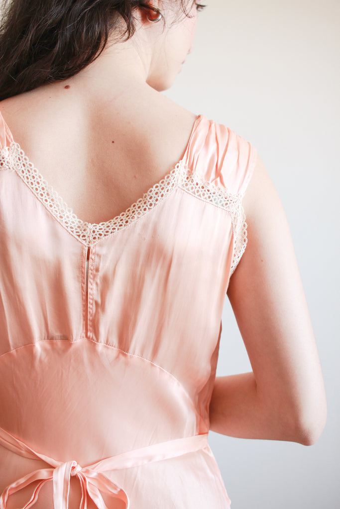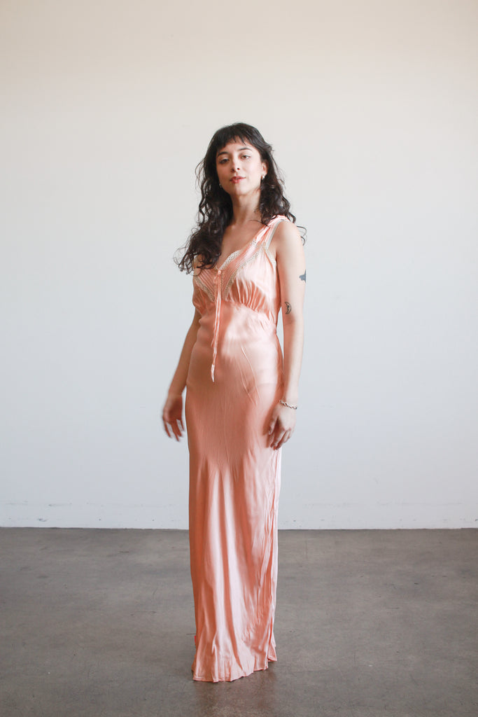 1940s Blush Silk Charmeuse Bias Pleated Nightgown