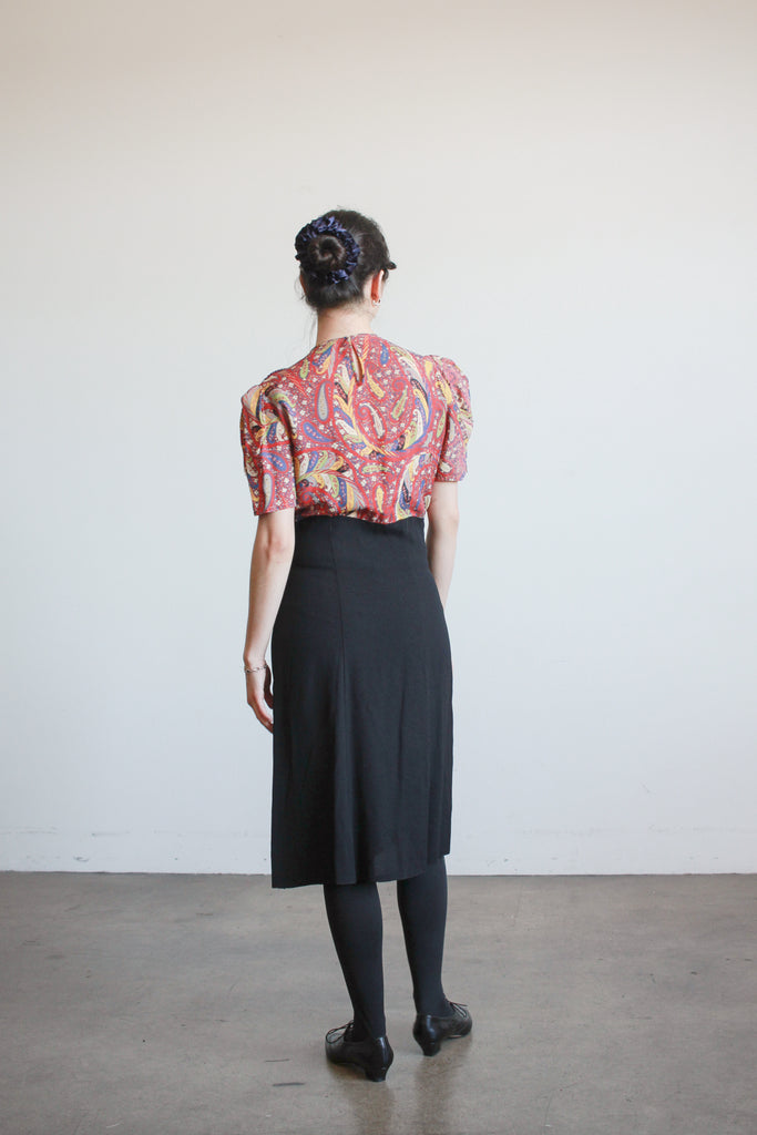 1940s Red and Black Rayon Paisley Dress