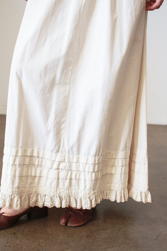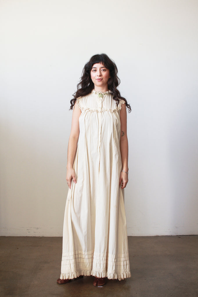 1900s Cream Cotton Lace Yoke Sleeveless Nightgown