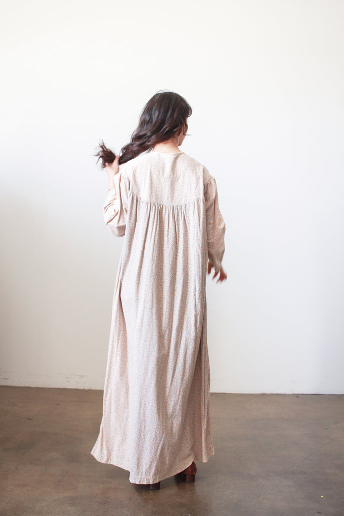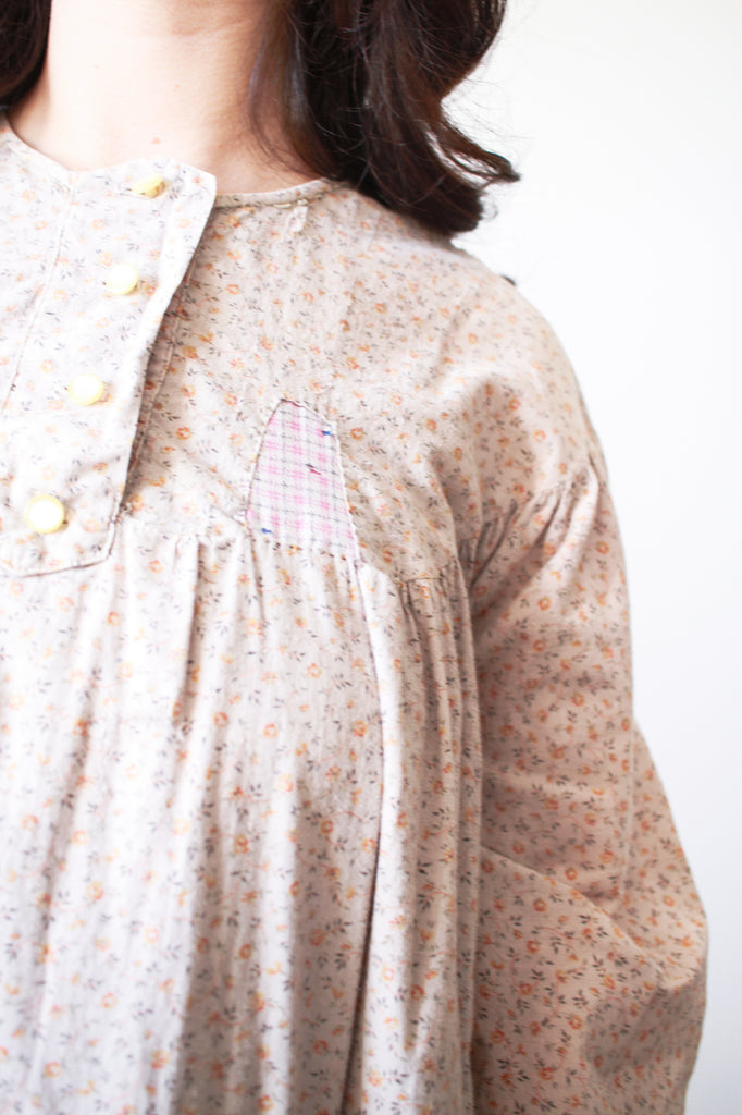Circa 1900s. Cotton. Fits most sizes. Orange rosette pattern throughout. Mother of pearl buttons. Great condition- some signs of wear including patchwork mends, consistent with age.