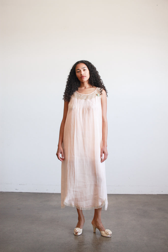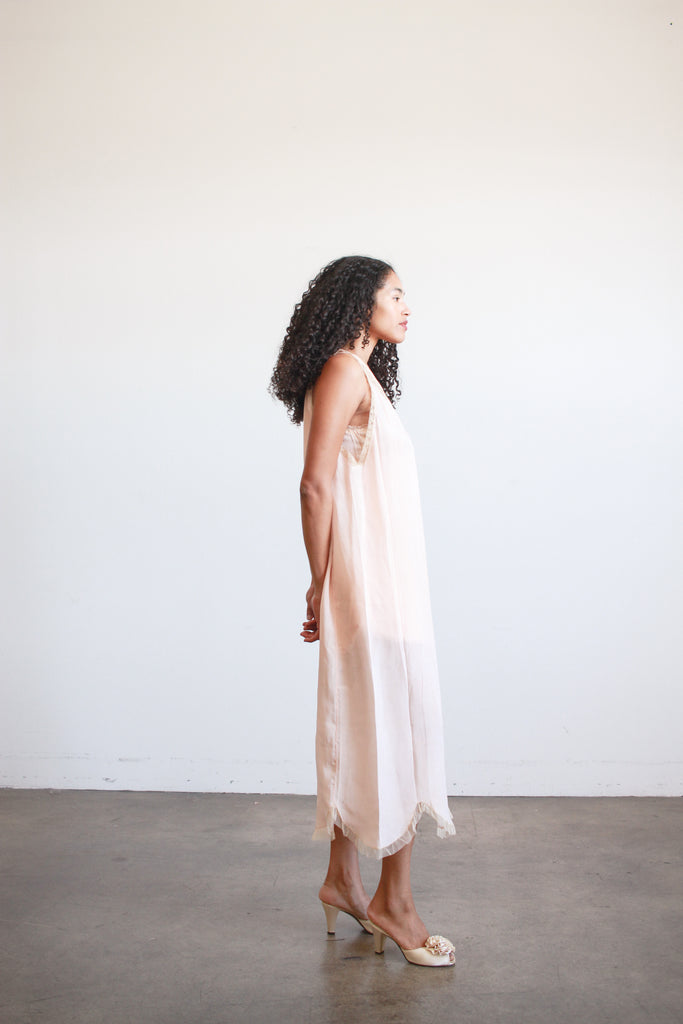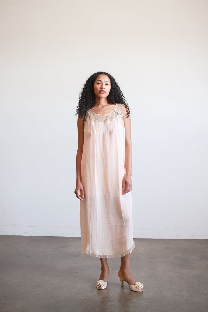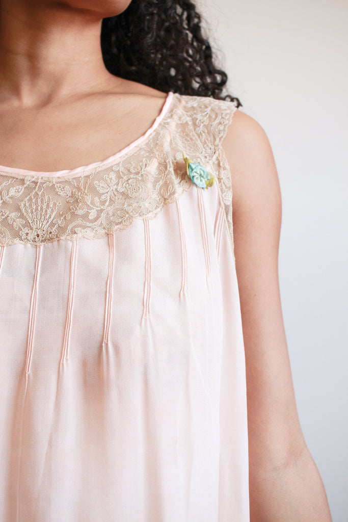1920s Ballet Pink Silk Lace Trim Dress