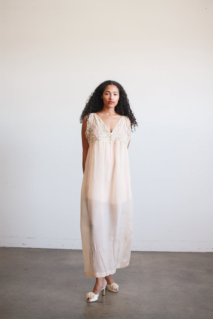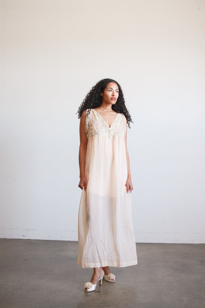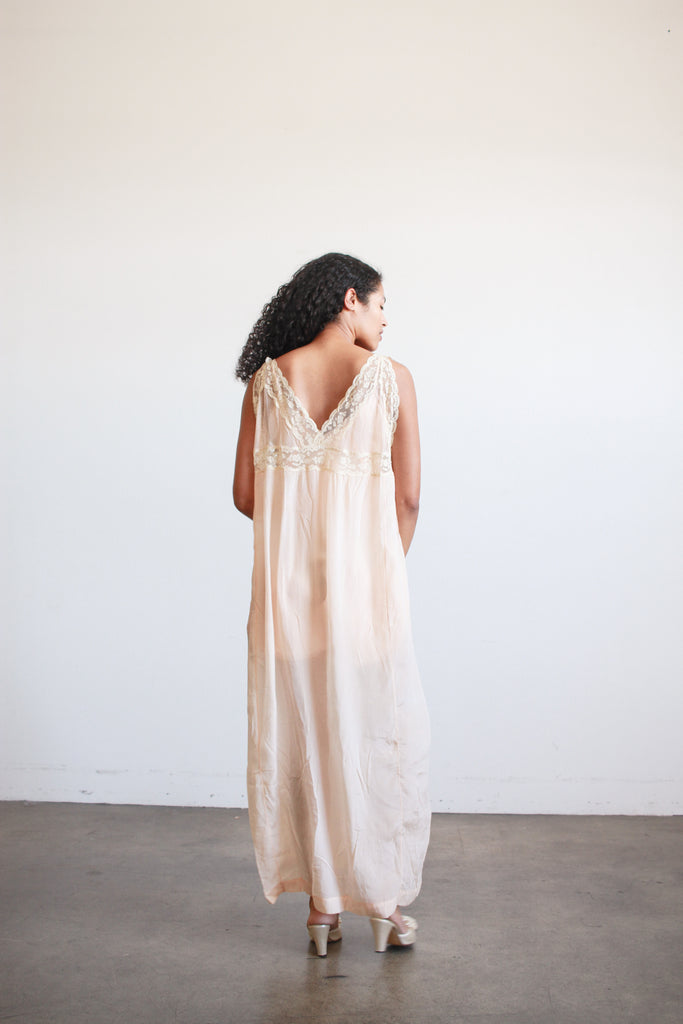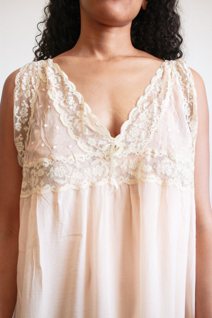 1920s Peach Silk Chiffon Lace Slip Dress