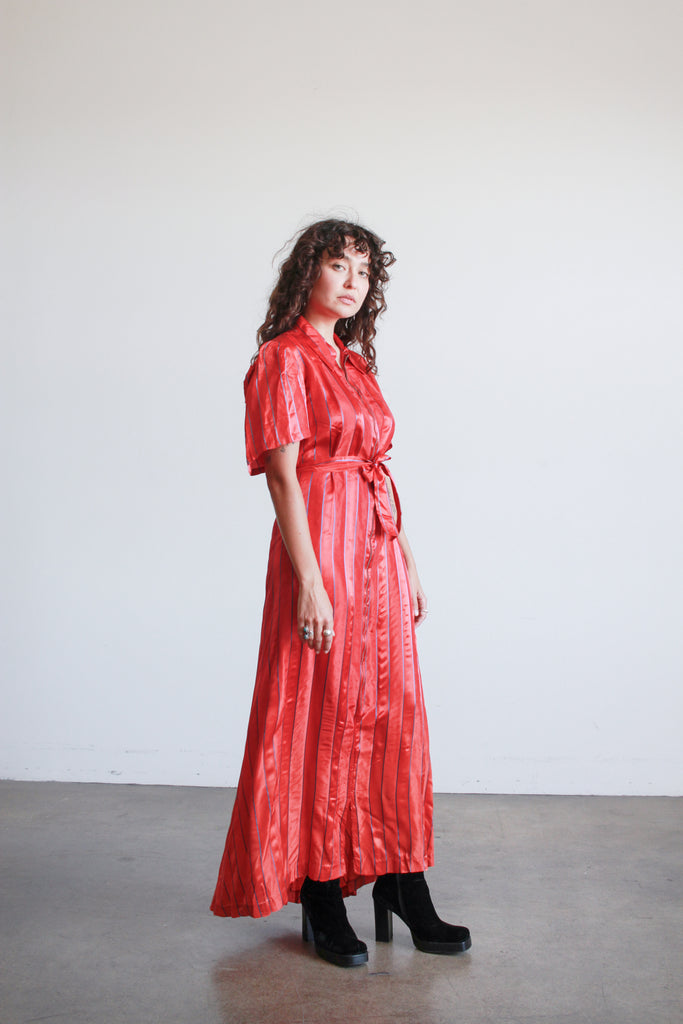1940s Peggy Jean Ruby Red Pinstripe Rayon Dress