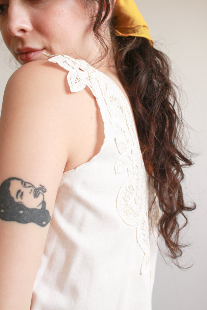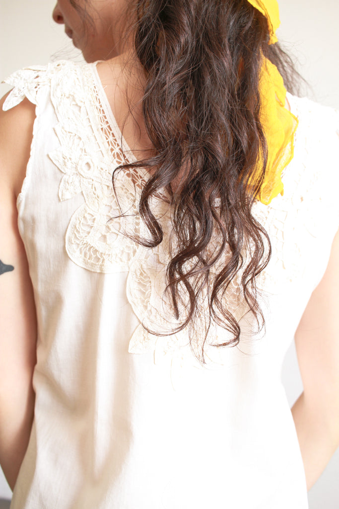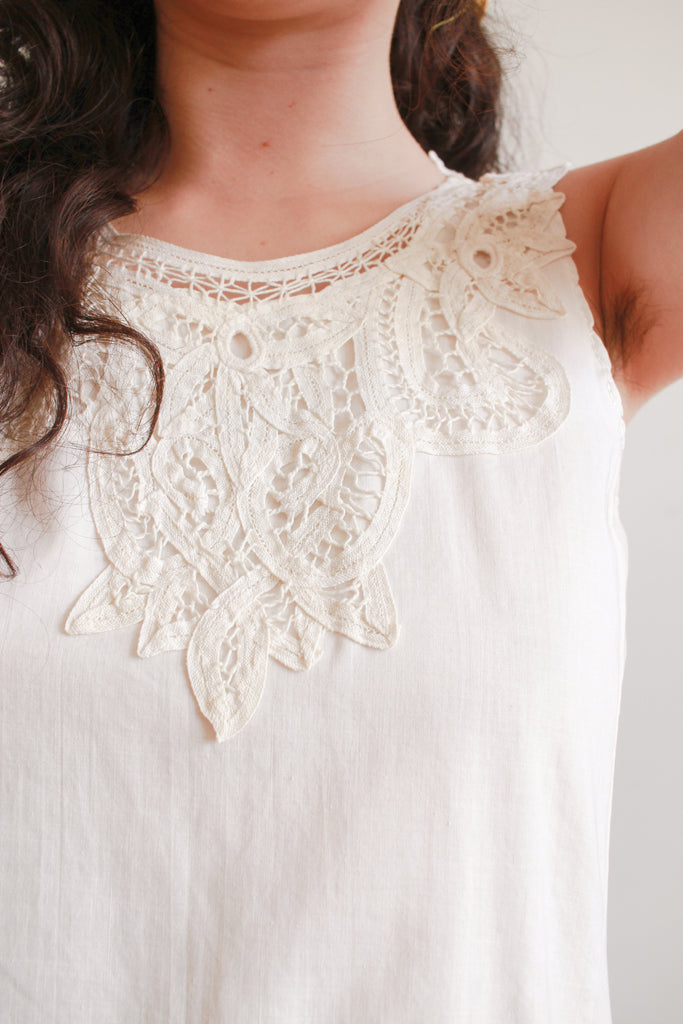 1950s Cream Tape Lace Sleeveless Dress