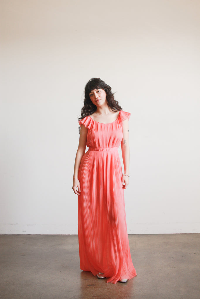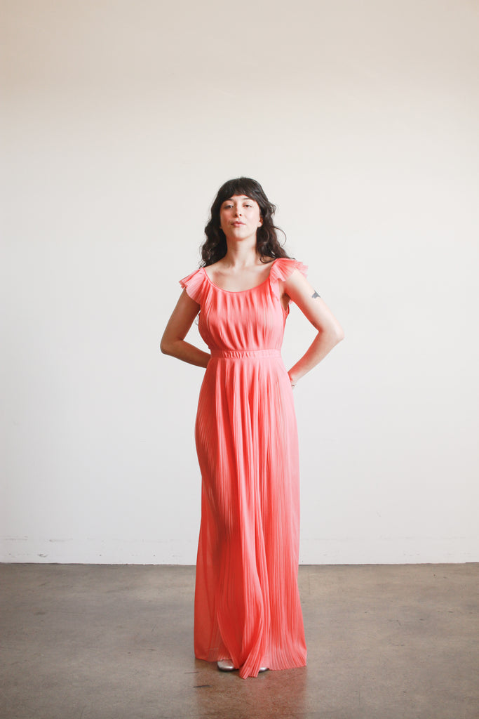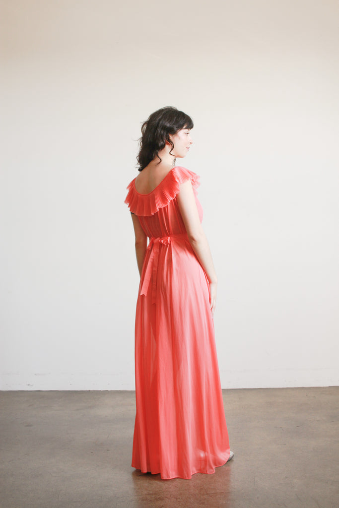 1950s Vanity Fair Coral Pleated Nightgown