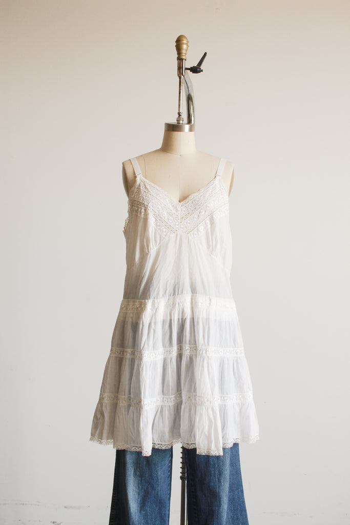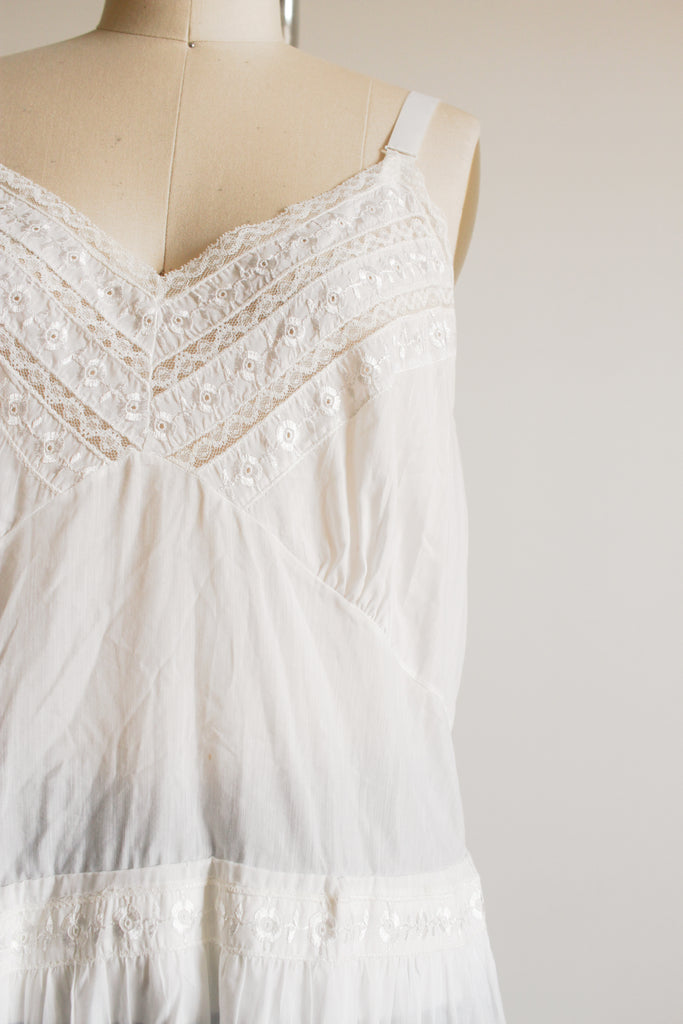 1950s White Tiered Embroidered Slip Dress