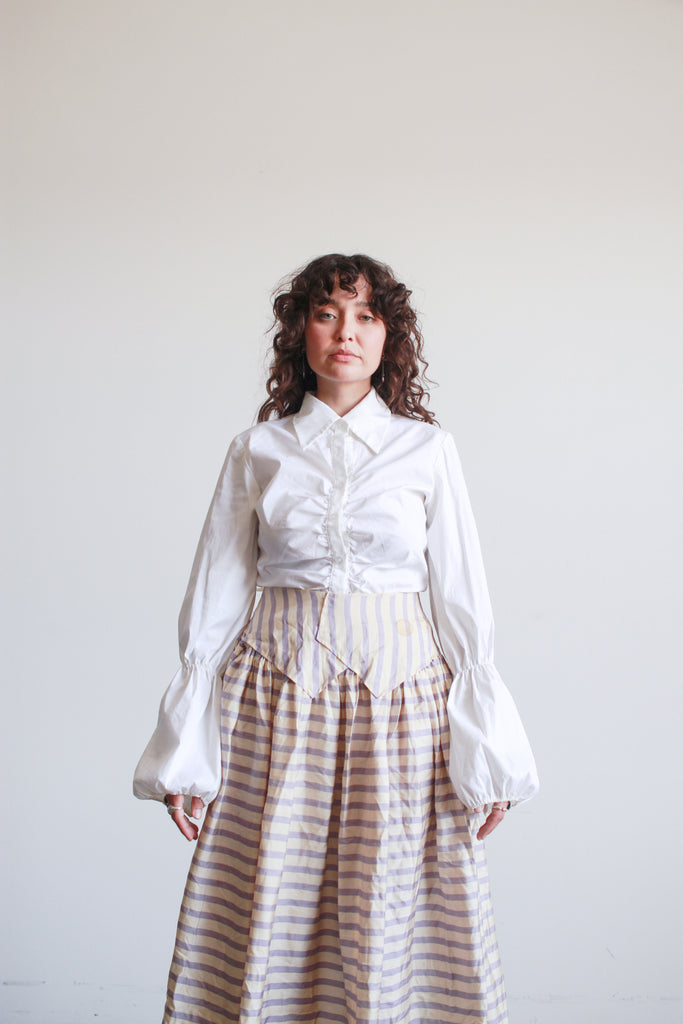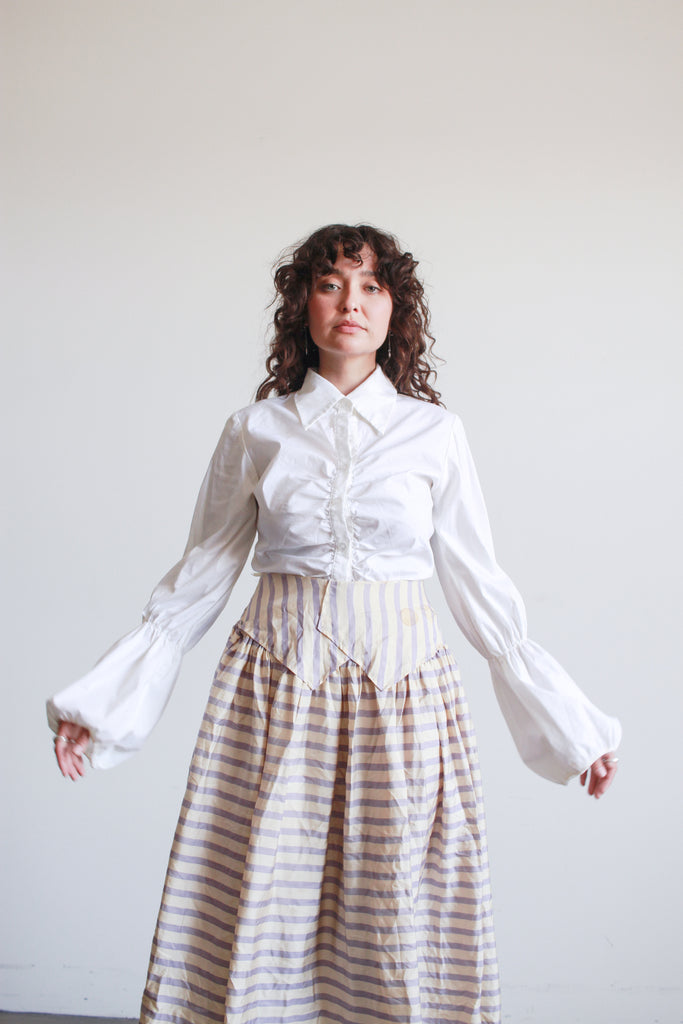 Circa 1990s. Cotton fabric. Fits up to M best. Front button closure. Bell sleeve with smock details. Great condition.